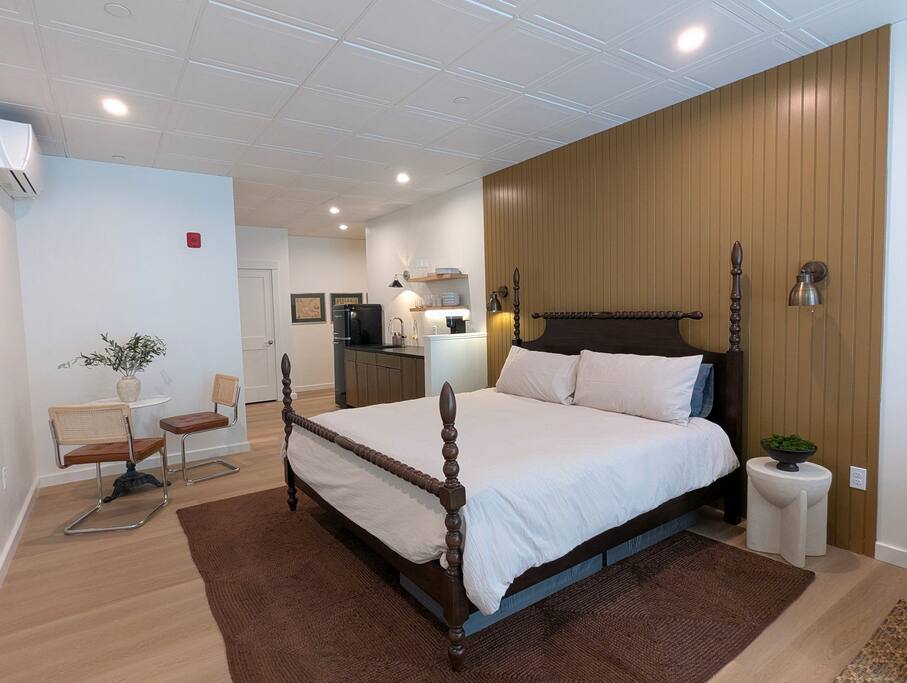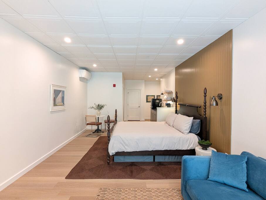 Nestled in Camden’s historic Knox Mill, The Optimist Guesthouse offers a refined retreat in the heart of town. Awaken to the gentle murmur of the Megunticook River flowing past, savoring moments of tranquility on your breezy balcony—perfect for quiet reflection or intimate dining. Unwind in the convenient shared gym, complete with an infrared sauna. A sophisticated haven, The Optimist Guesthouse exudes calm and yet is just steps from all that bustling Camden has to offer.